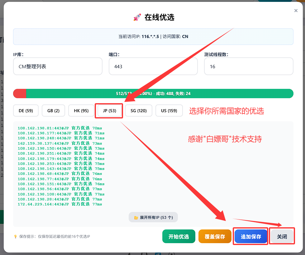 - 感谢 白嫖哥 提供的服务支持在线优选功能